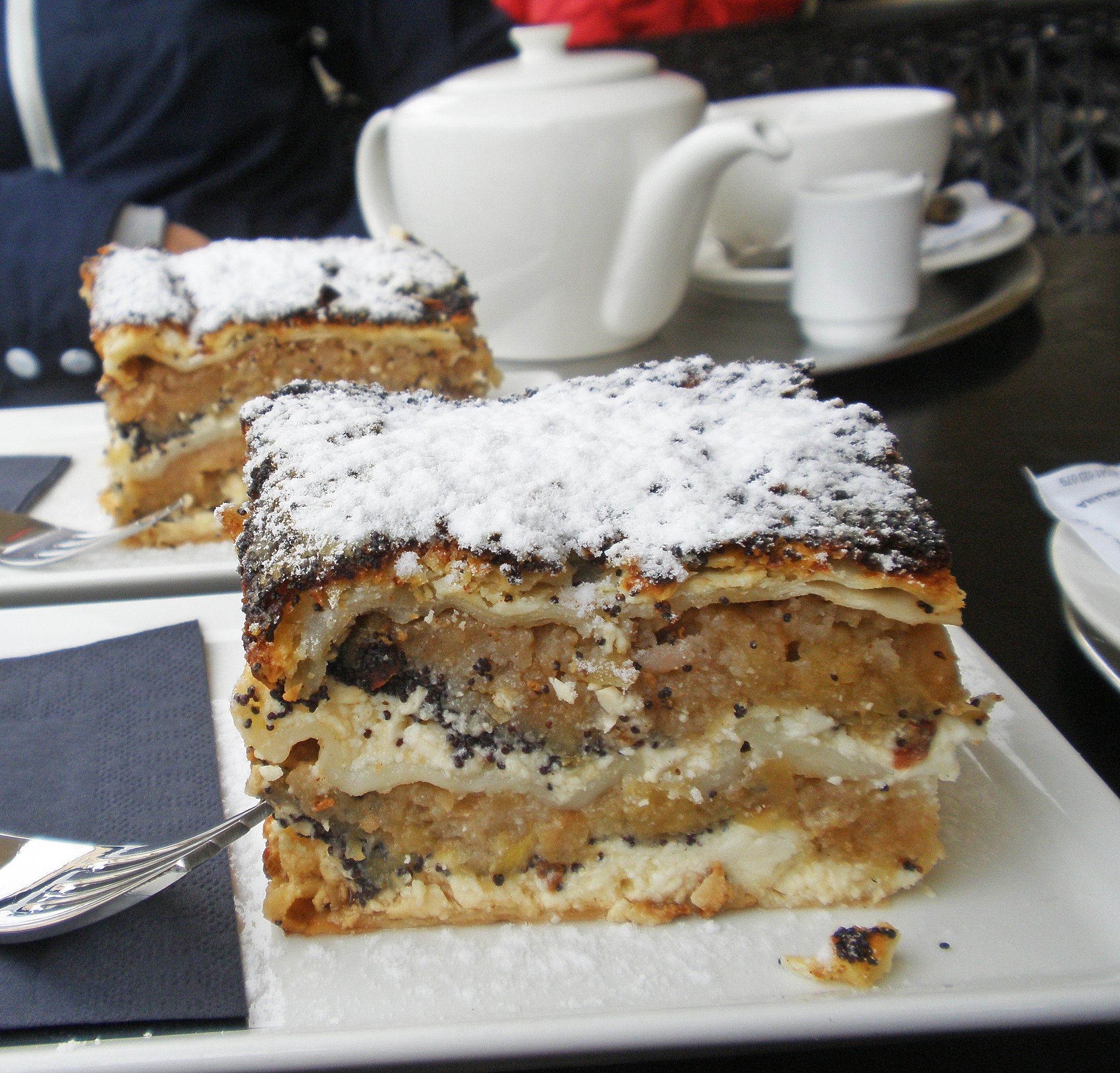 [edit]| DescriptionPrekmurska gibanica (26048510055).jpg | Prekmurska gibanica (Prekmurian layer cake or over-Mura moving cake) is a type of Slovenian gibanica or layered cake.[1] It contains poppy seeds, walnuts, apples, raisins and ricotta fillings. Although native to Prekmurje, it has achieved the status of a national specialty of Slovenia. The unique sweetmeat shows the variety of agriculture in this region. The name gibanica comes from dialectical expression güba and in this case refers to a fold. |