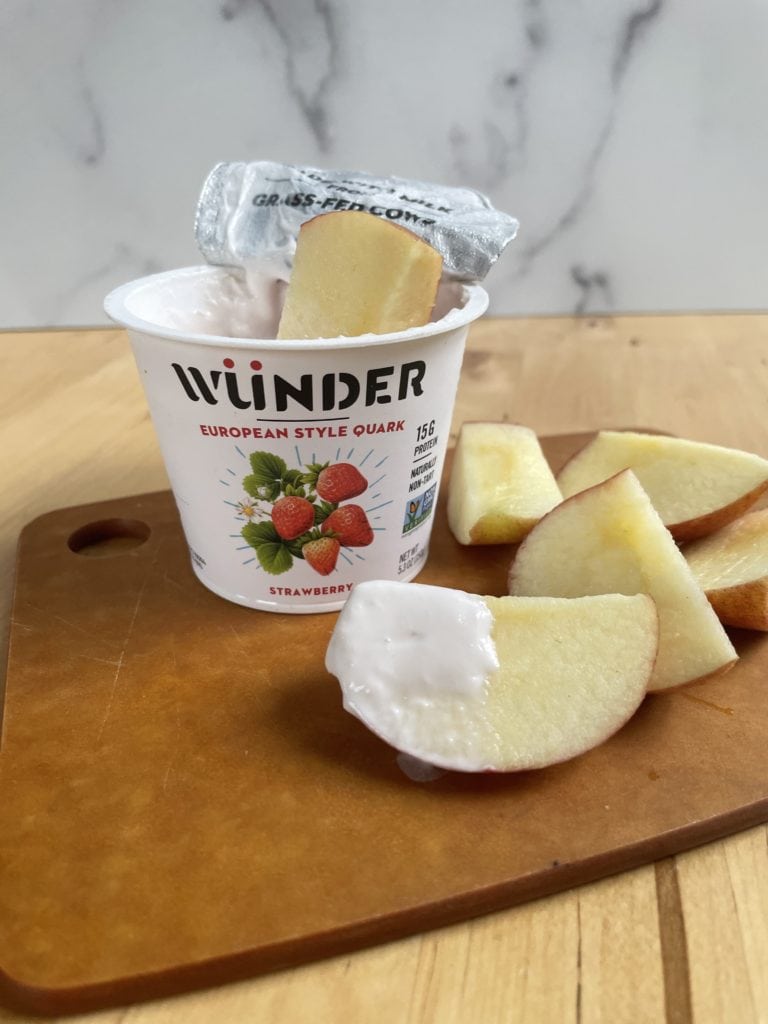 I also really love dipping apple sliced into Strawberry Quark. It’s a healthy snack that makes you feel like you’re indulging in mid-day dessert!