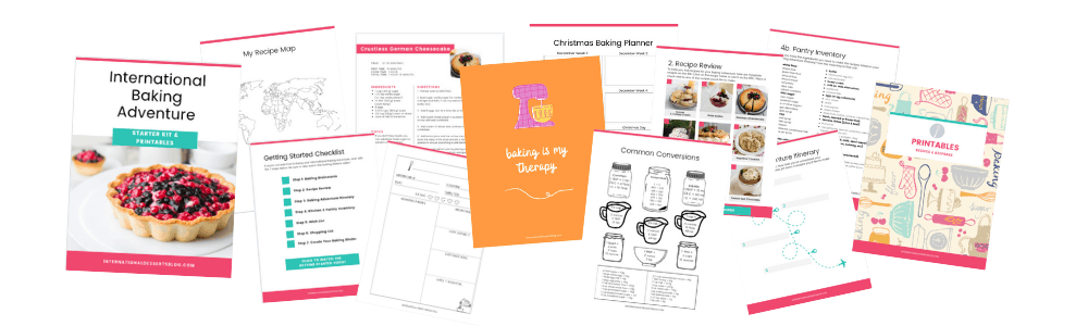 I created these printables just for you! This set of printables is like a travel journal for your International Baking Adventure! The 75+ printables get you baking, keep you organized, and then turn into a treasured keepsake.
