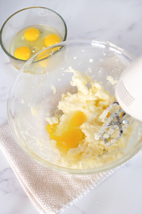 Add the eggs, 2 at a time, and beat on low until incorporated.