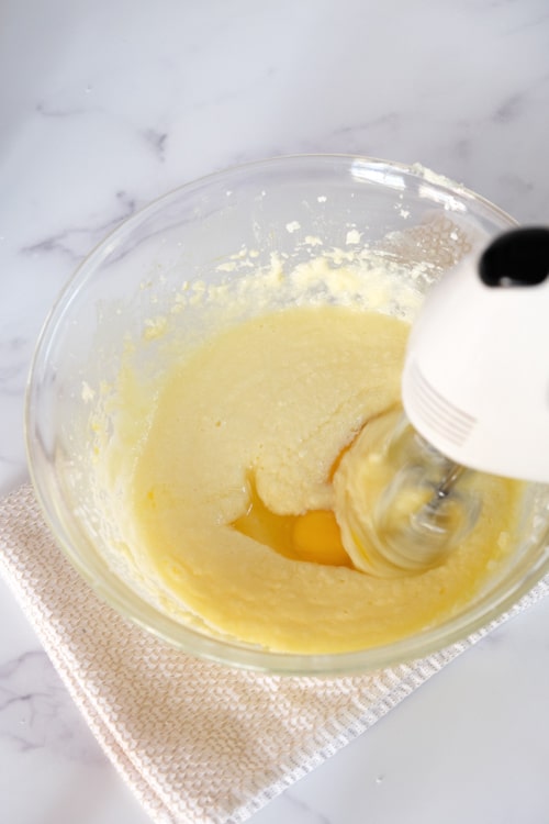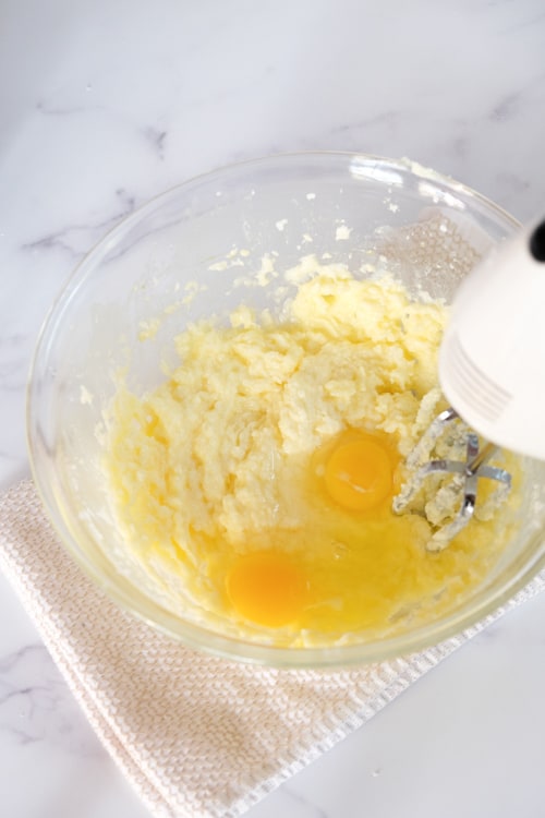 Using a stand mixer or a hand mixer beat the room temperature butter, sugar, and vanilla sugar (or extract) until light and fluffy. I recommend using a large mixing bowl for this recipe.