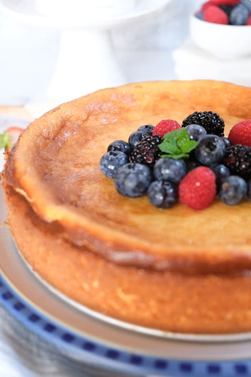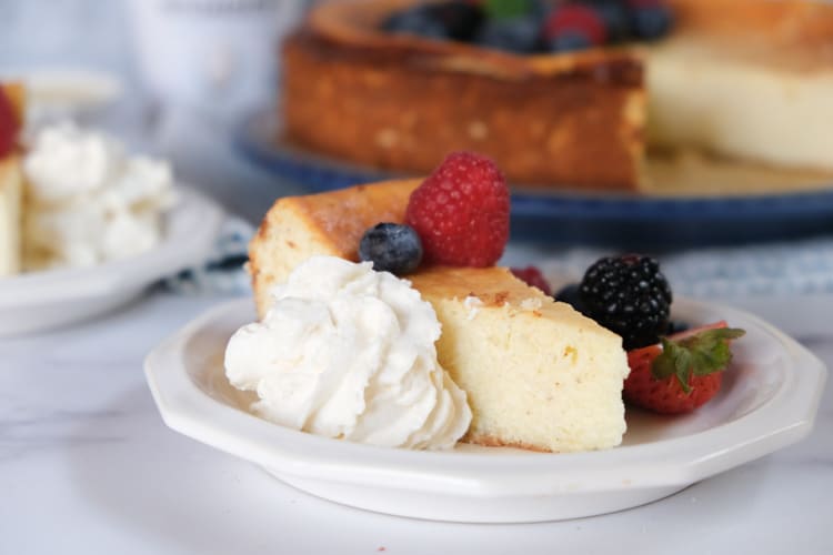 This crustless German cheesecake is a quick and easy dessert that’s full of flavor. It’s delicious on it’s own (my husband and I devoured it) but you can also serve with fresh berries and side of whipped cream.