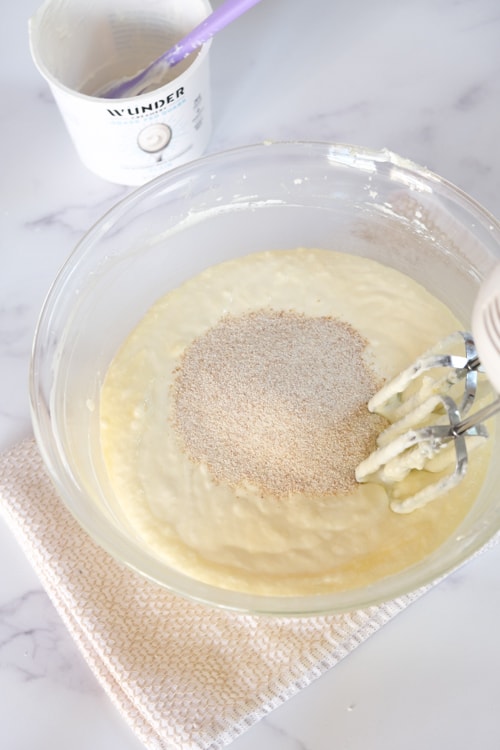 Then add the Quark. I recommend using Wünder Quark, of course! Beat on low until the Quark is well combined.