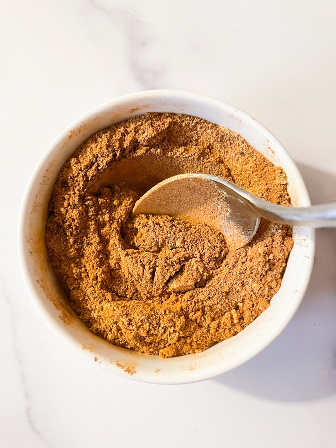 Add the following ground spices to a small jar or bowl (see recipe below for amounts):
