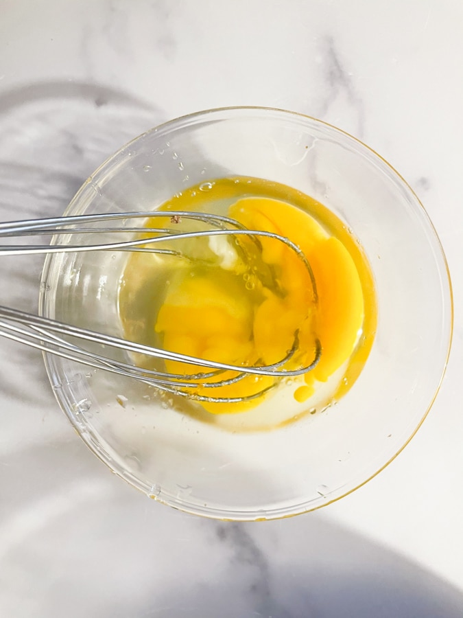 - Whisk the eggs in a small bowl, then add the eggs to the dough and mix again.