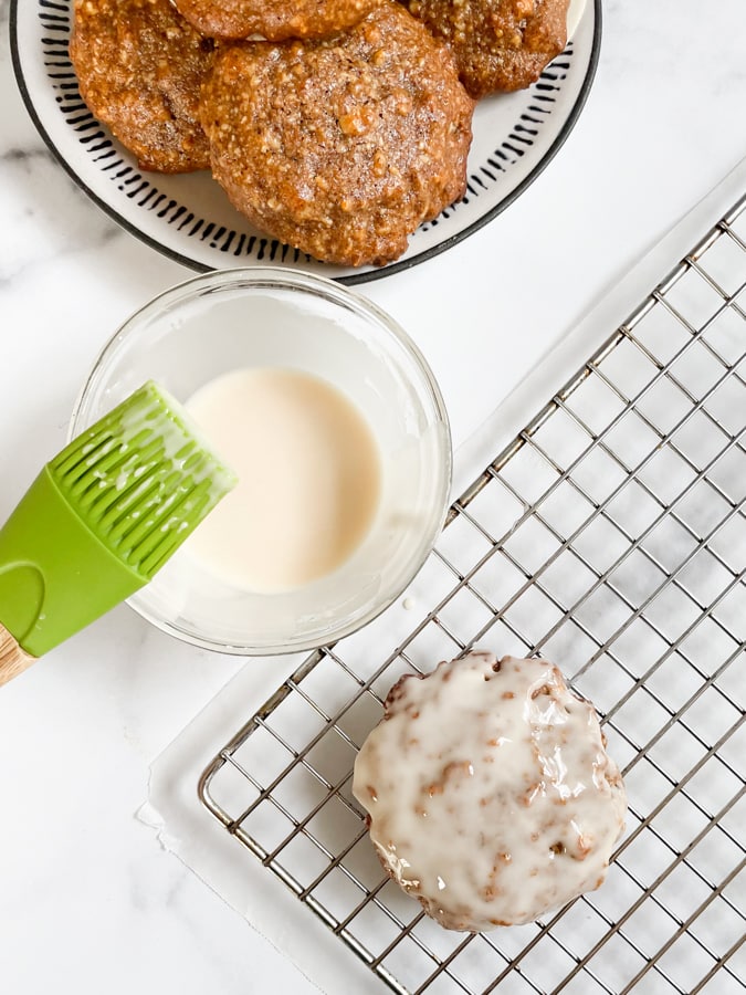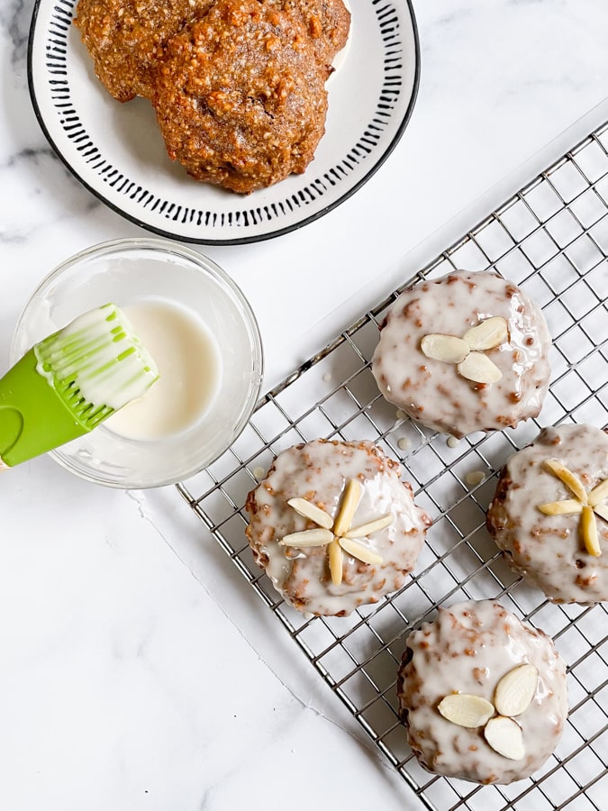 Note – I experimented with a cooked sugar glaze but found it much harder to work with. I recommend using non-cooked powdered sugar glaze.