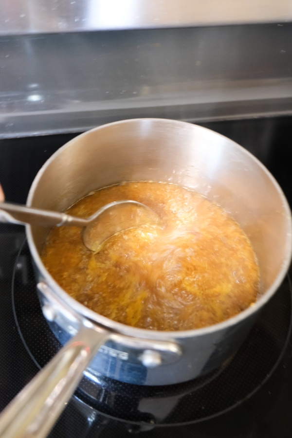 - Heat water and sugar in a small saucepan over medium high heat.