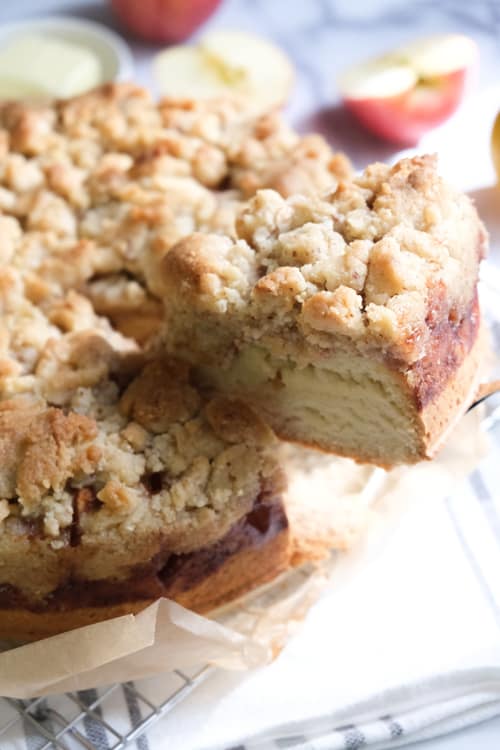 The three layers – yeast cake, apples, and streusel – combine to create a super tasty dessert!