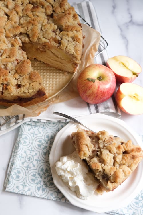 This 3-layer German Apple Streusel Cake is easy, beautiful, and absolutely delicious! If you’ve got apples, you’ve got to make this German cake.