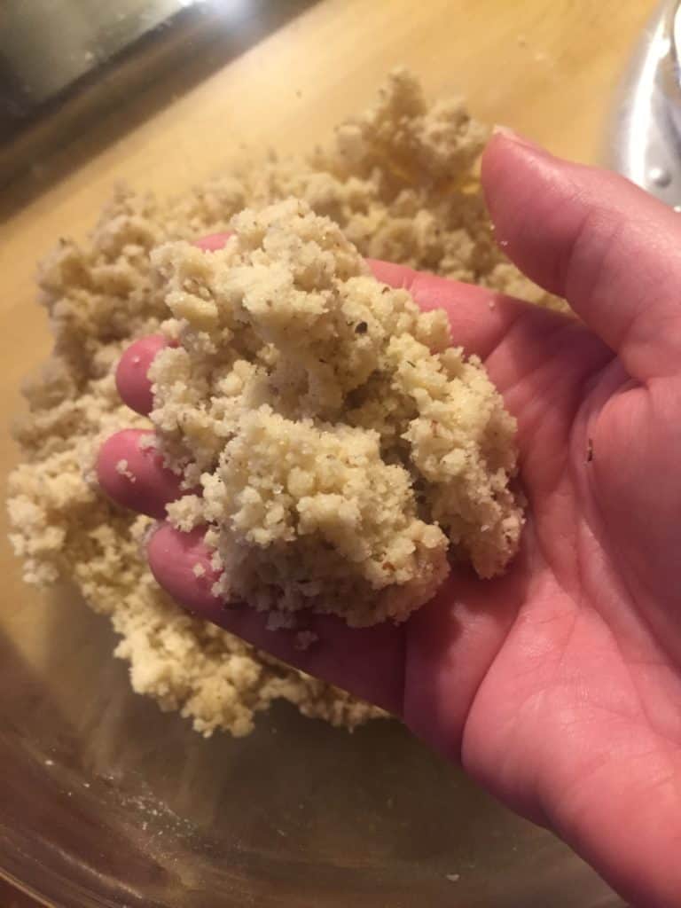 - Ground almonds (I buy this at Trader Joe’s but you can grind almonds in a food processor if you prefer – just make sure to stop before it becomes almond butter!)