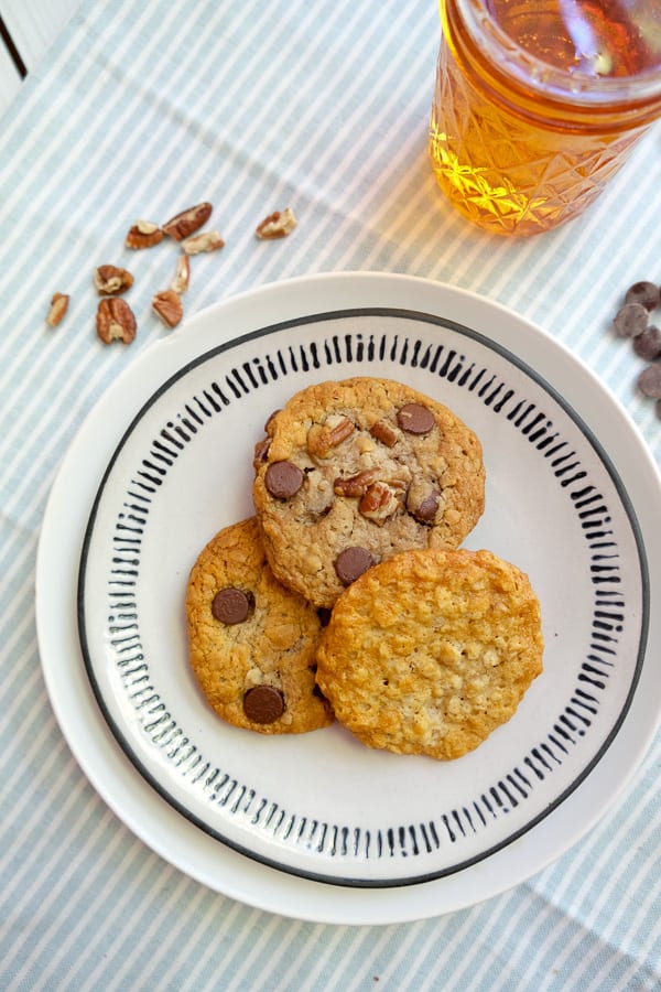 Tender cookies with oats and a light buttery caramel golden syrup flavor. Take these cookies up a notch by adding chocolate chips and pecans!