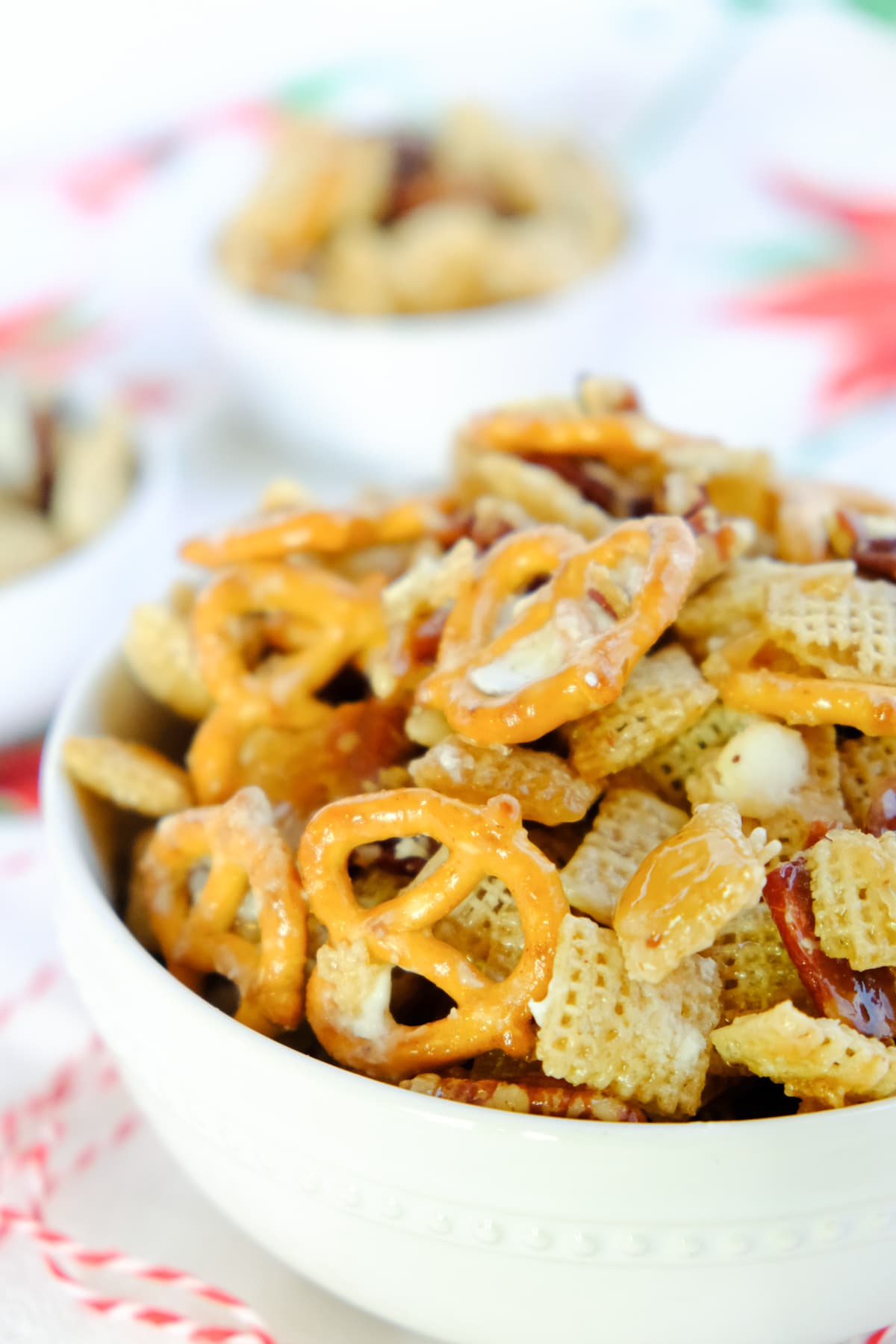 I call it a Christmas mix because I often make it during the holidays but it’s one of those tasty treats that’s delicious all year long! Perfect for snacking or a dessert treat.
