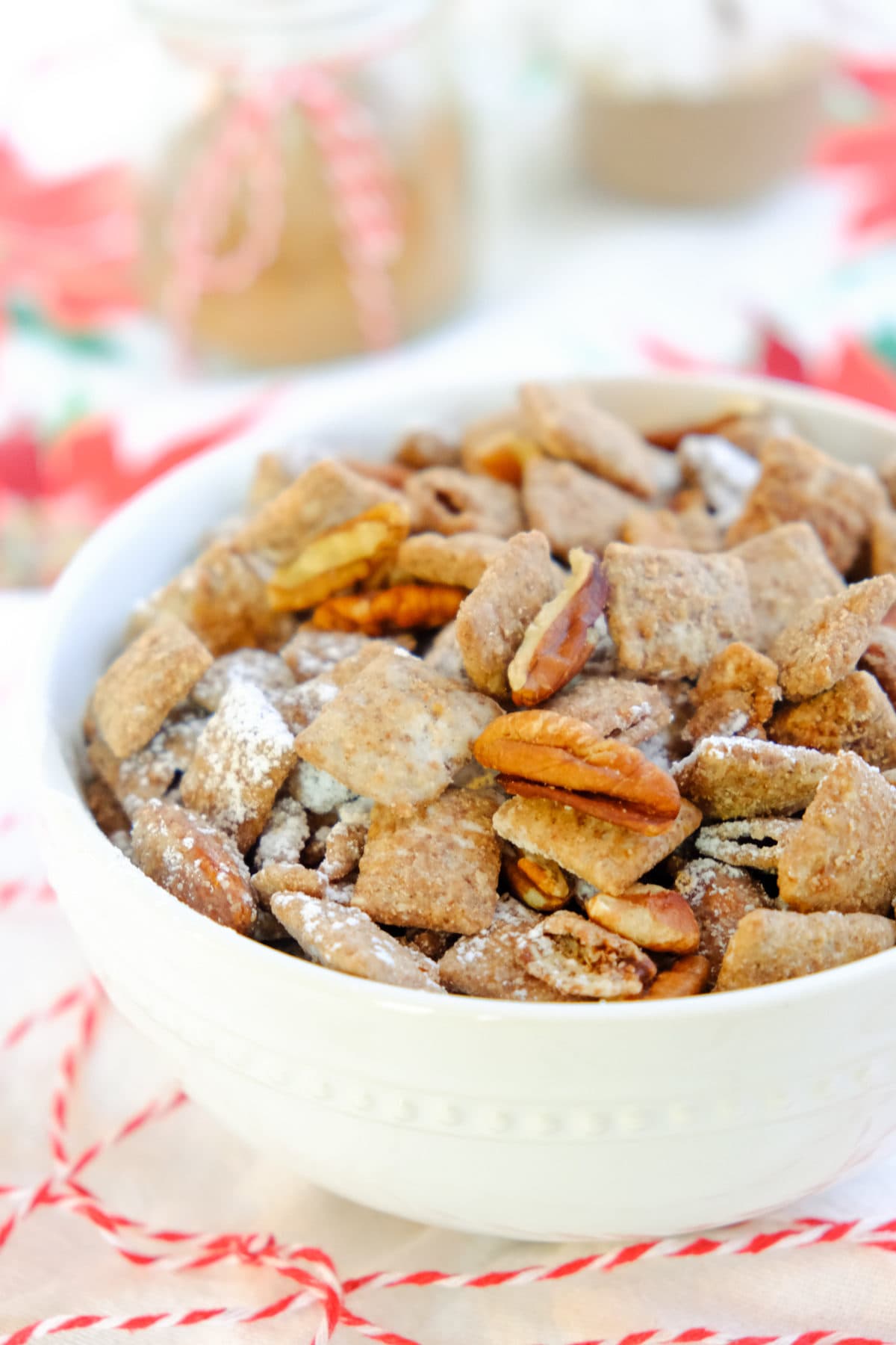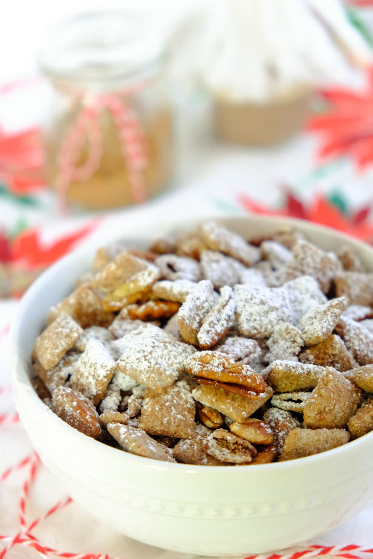 The spice mix really takes this Christmas muddy buddies recipe up a notch. It’s SO good and just tastes like Christmas. It’s become one of my favorite snacks to munch on during the holidays.