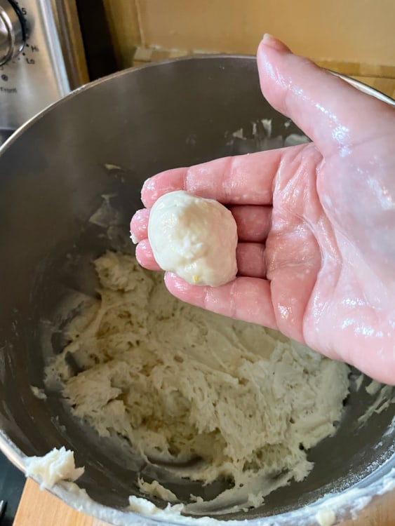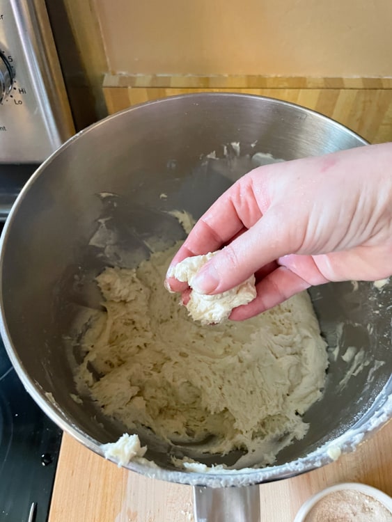 - It’s easiest to make the dough with a stand mixer and hook attachment (for kneading). That said, if you don’t have one, you can knead the dough by hand.