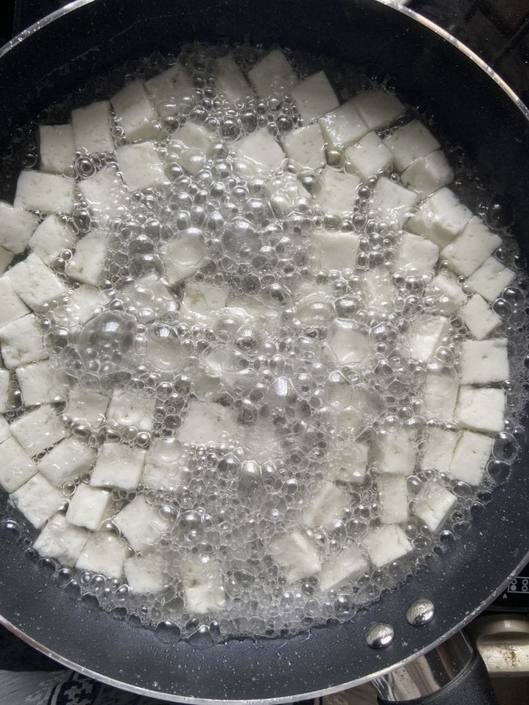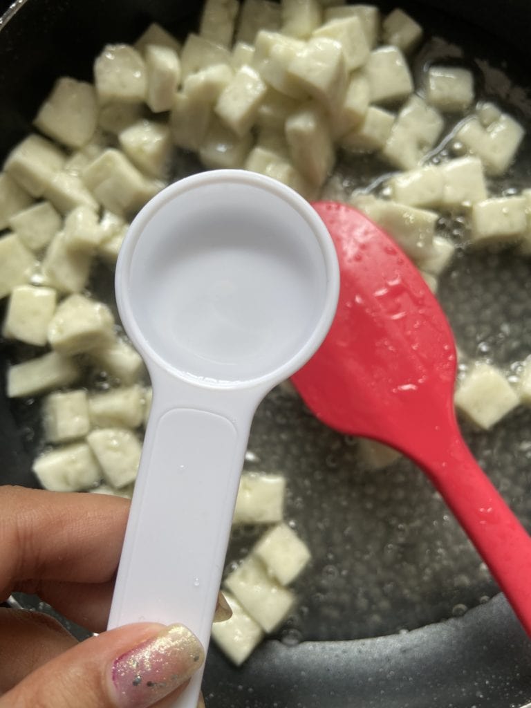 - Cut paneer into small cubes. Set aside.