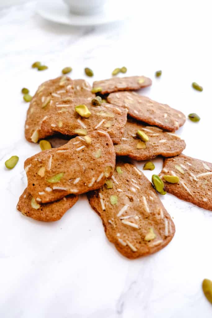 I really liked these cookies! Because they were sliced so thin they were super crunchy. I liked the almonds and hazelnuts, too. The original Danish version calls for almonds and pistachios but the pistachios I’d bought ended up in my husband’s stomach before I could make these cookies!