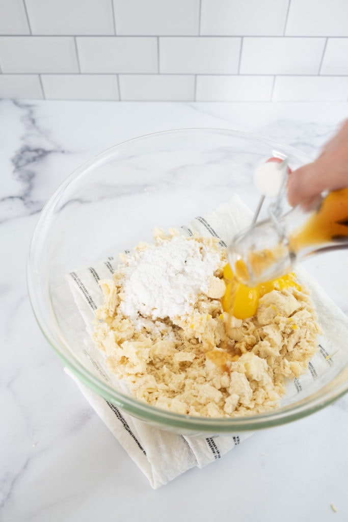 - Stir in powdered sugar, vanilla extract, and egg yolks to make a dough.