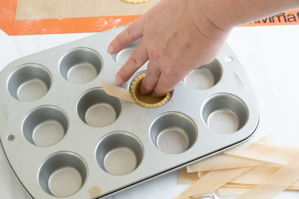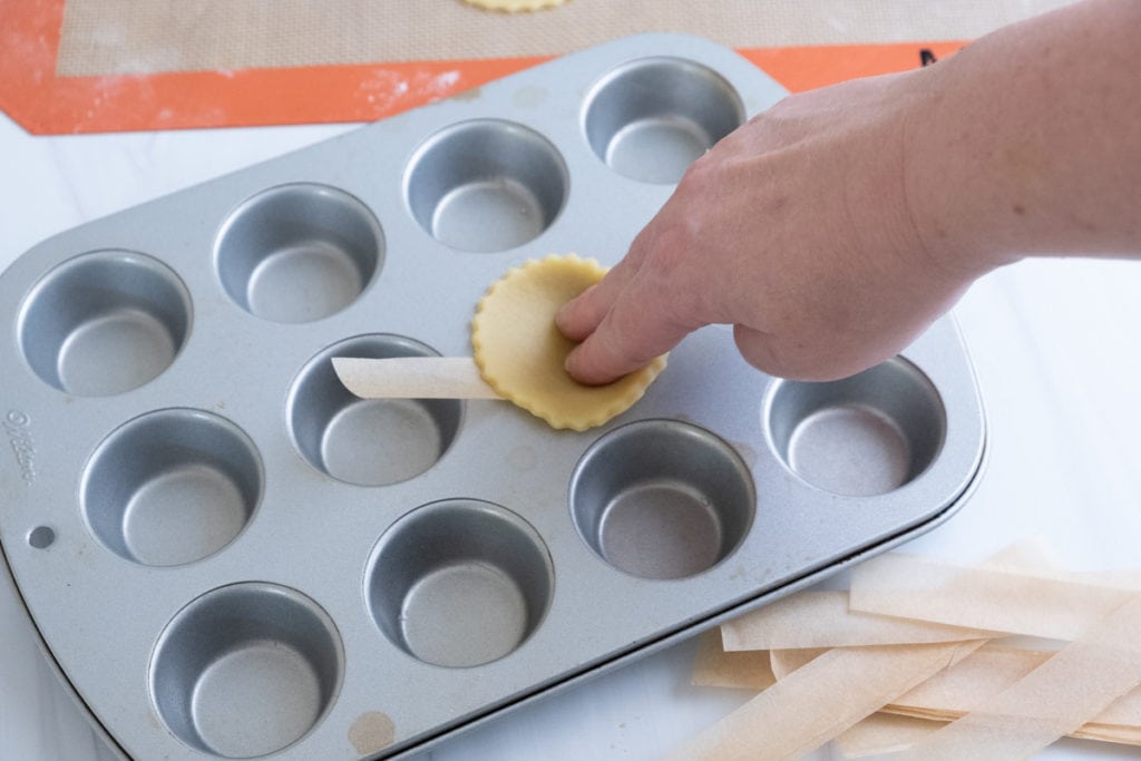 Use a cookie or biscuit cutter that’s larger than your mini muffin tin to cut out pastry rounds.