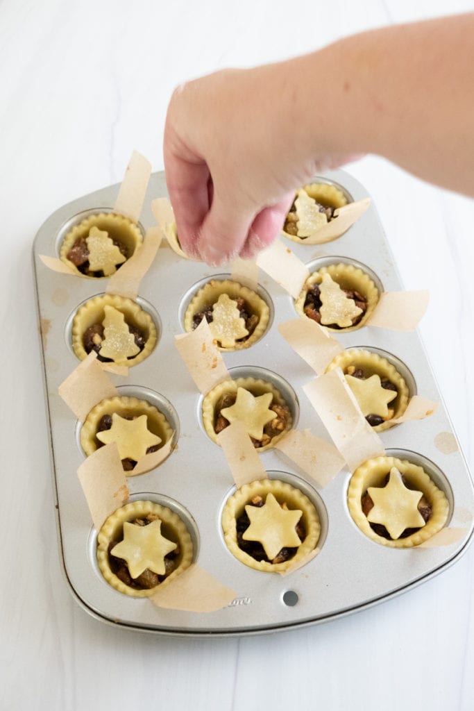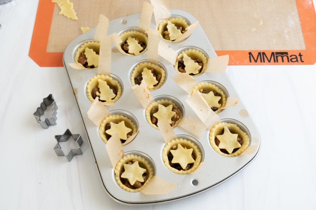For the crust on the top of the pies, I tried different mini cookie cutters and liked the small stars and Christmas trees the best. I think stars are most traditional, but feel free to get creative.