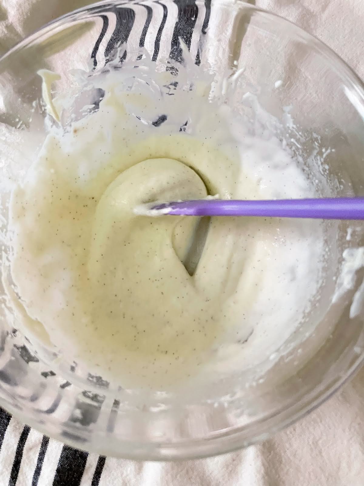 It’s quick and easy to make this fluffy topping in just one bowl. Tip: make sure your cream cheese is at room temperature so it’s easy to whip.