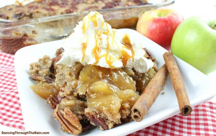 This Caramel Apple Pecan Dump Cake is a fantastic dessert for any time of year! Easy and delicious, these classic flavors and spice cake mix will turn this into a family favorite!