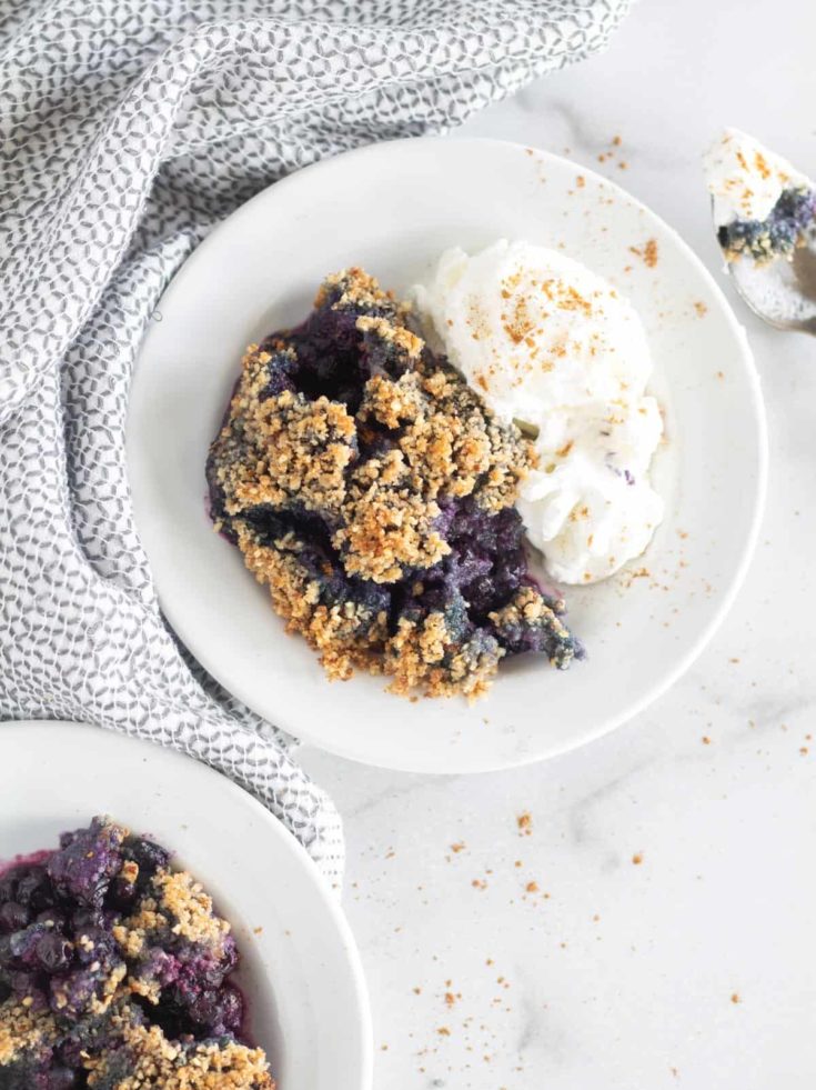 This old fashion cobbler recipe is a classic family favorite. Make it with any fruit you have available, here we used blueberries, and serve with whipped cream or ice cream.