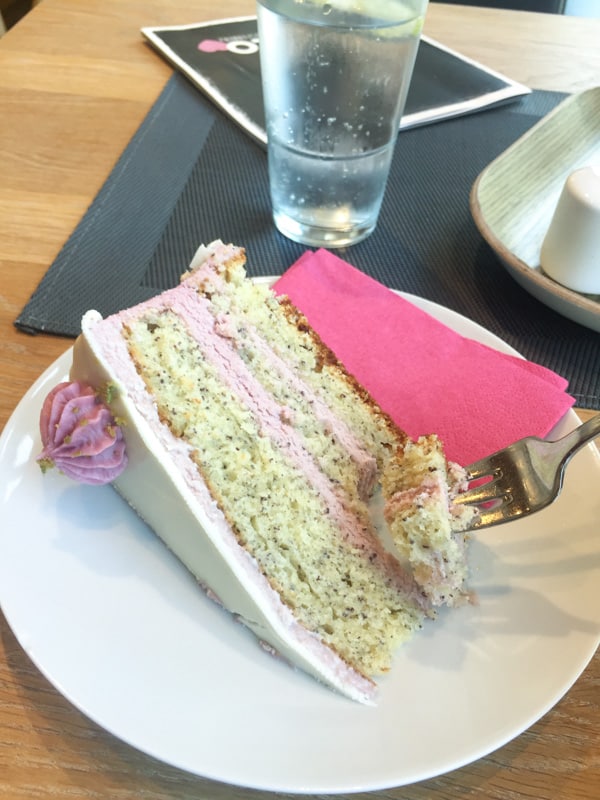 I stopped at a cute cafe in Esslingen (near Stuttgart) on my last day in Germany and had a really tough time choosing which cake to try. I finally settled on this piece of blackberry poppyseed cake with white chocolate ganache. Wow, it was so good!! I’m definitely going to recreate this one at home.