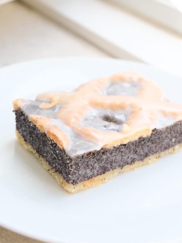 Like poppyseeds? You’ll love this cake. The filling is poppyseeds and – I think – ground almonds (there was definitely an almond flavor in this cake). The glaze on the top of the cake sweetened it up a bit. I’m not a huge fan of ground almonds (marzipan) so this wasn’t my favorite cake of all time, but I enjoyed trying it.