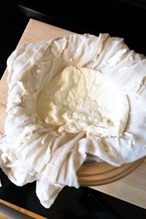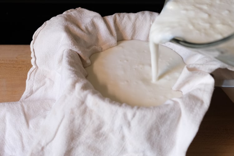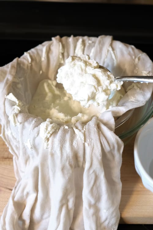 Take the strainer out of the bowl and pour the whey into a jar to use later (you can use it in smoothies, baking, soups, etc).