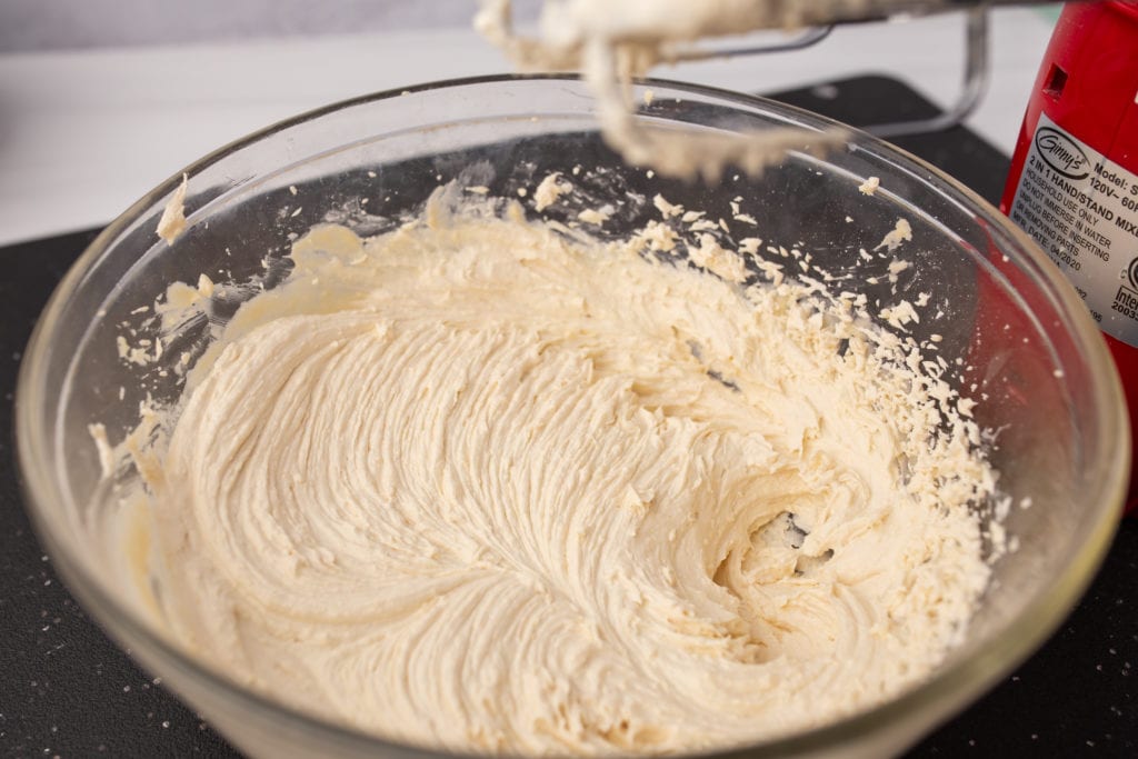 To make the filling, add softened butter, powdered sugar, heavy cream, and vanilla pudding mix (or custard powder) to a mixing bowl. Beat until light and fluffy. I love using my Breville hand mixer for this. I’m seriously in love with that mixer!