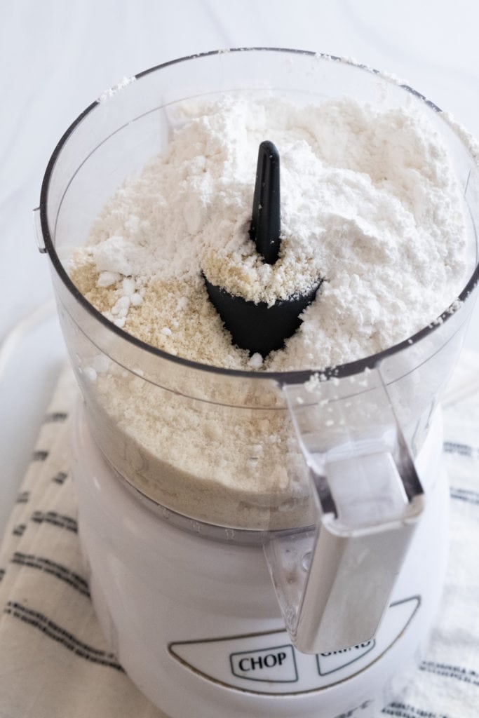 Add powdered sugar, blanched almond flour, and almond extract to a food processor.