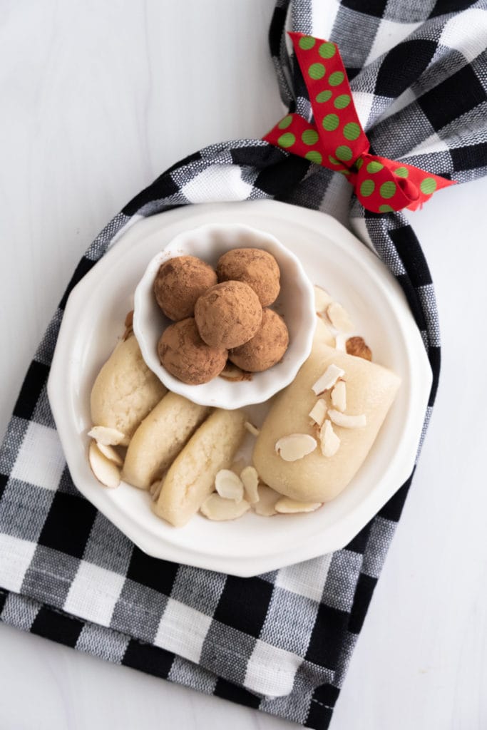 - Chocolate or food coloring – optional, only if you want to dip marzipan in chocolate or create fruits or other shapes and color with food colors