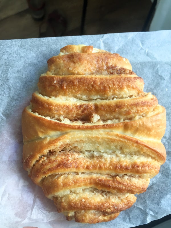 Traditionally it has a cinnamon sugar filling but you can also find them filled with other things like raisins or chocolate chips (also good). I loved the light buttery flavor and texture.